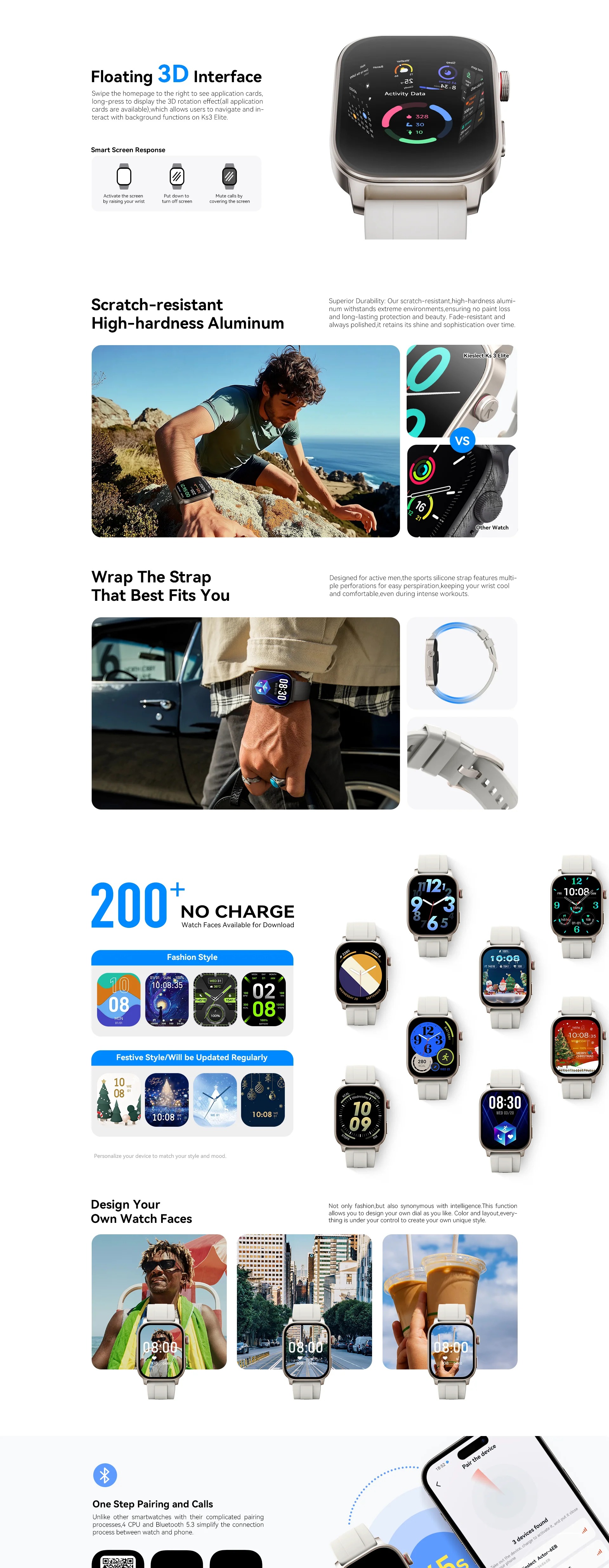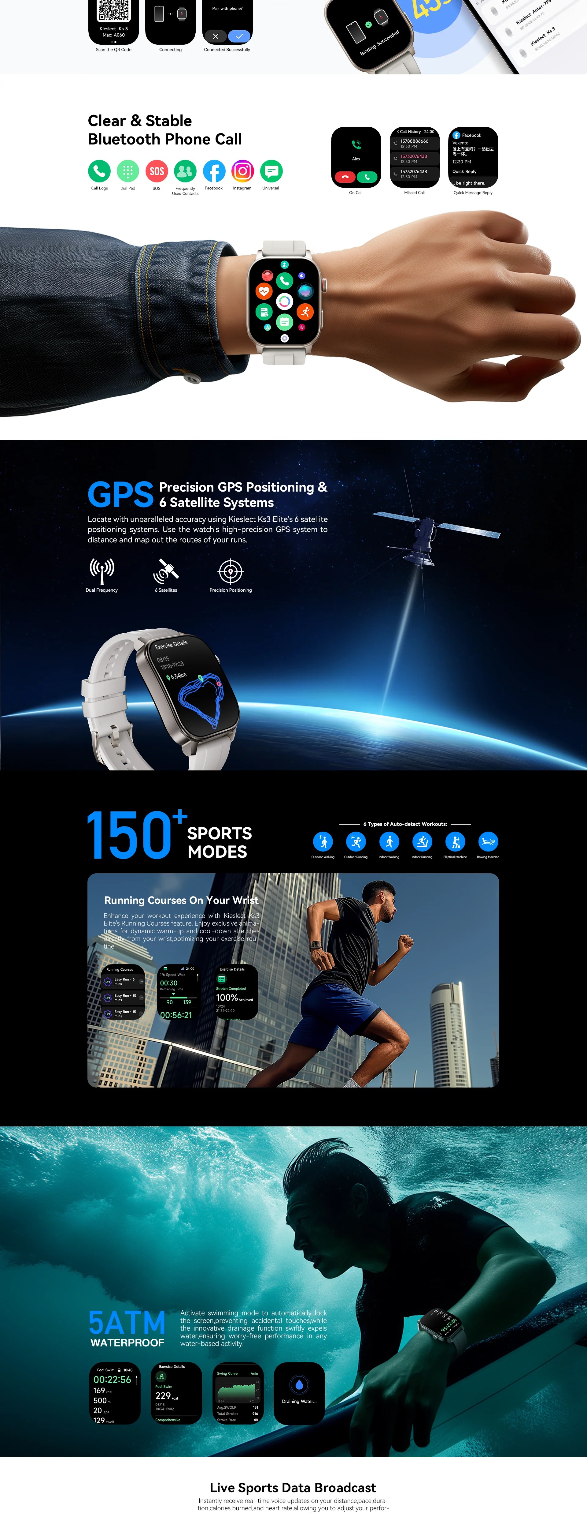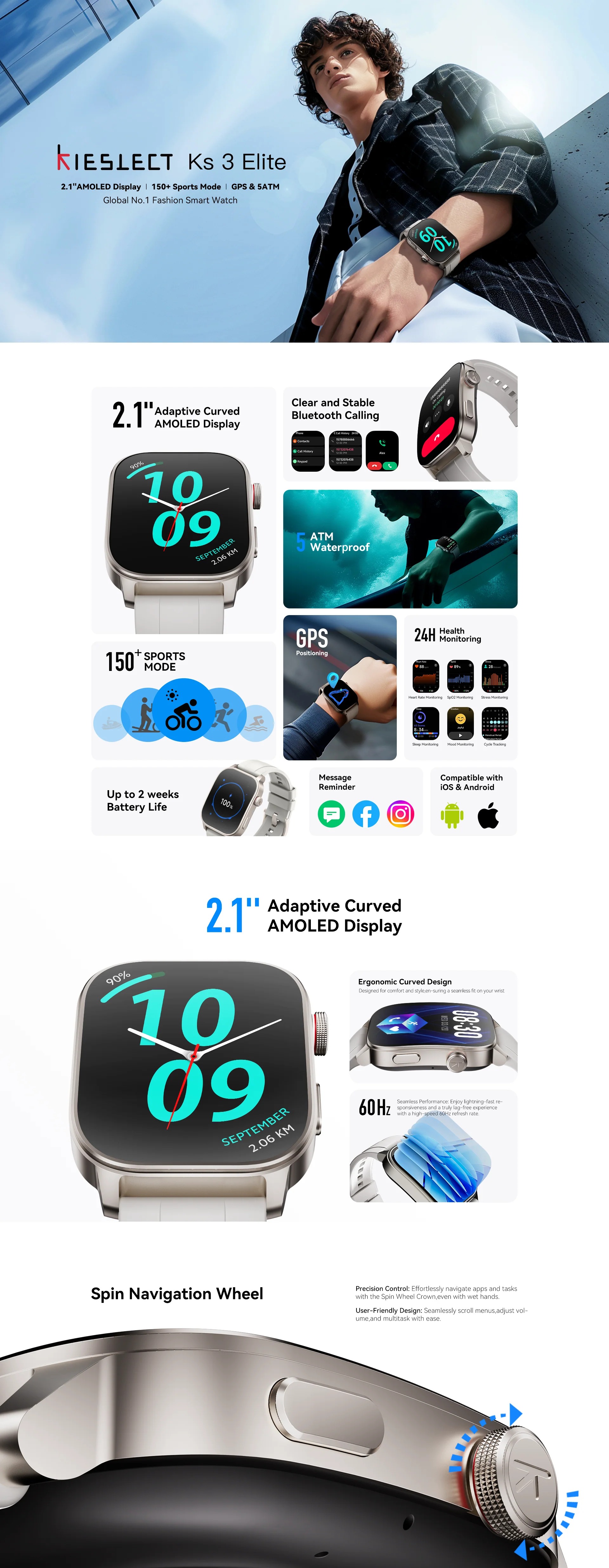 ● 5ATM Water Resistance : Résistant à l’eau jusqu’à 50 mètres pour un usage quotidien et sportif.