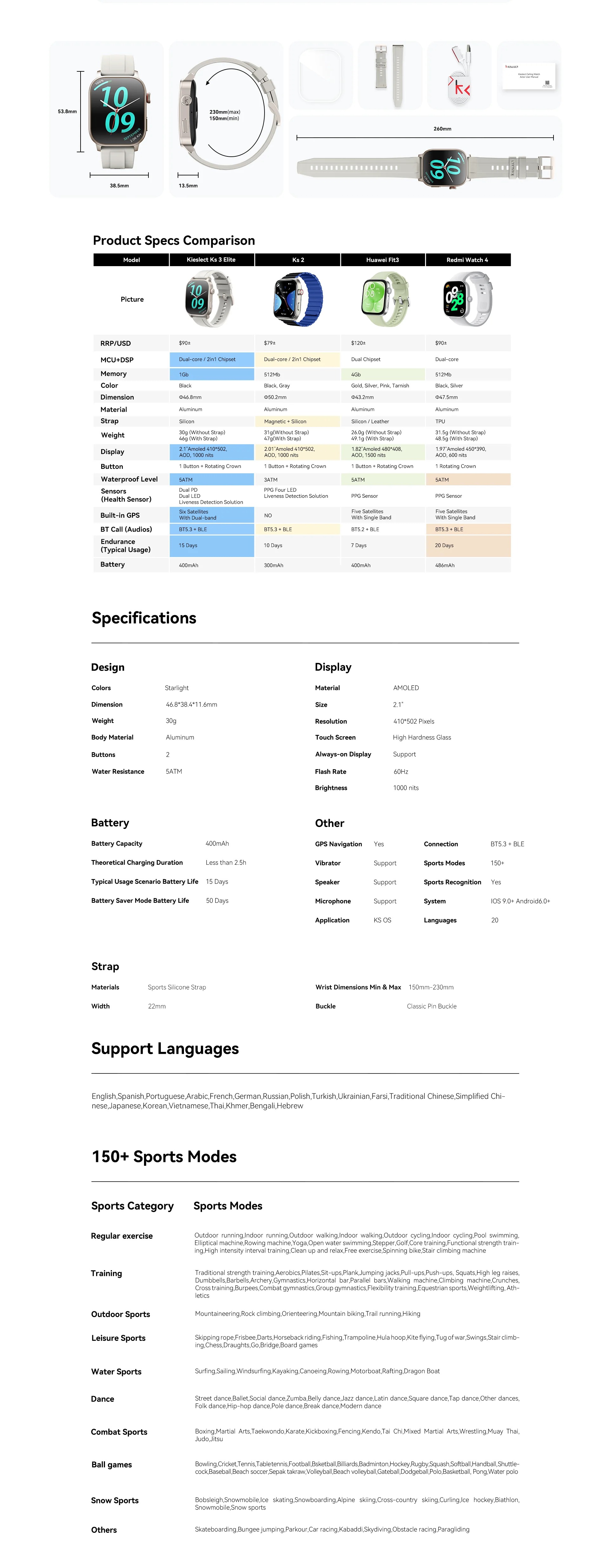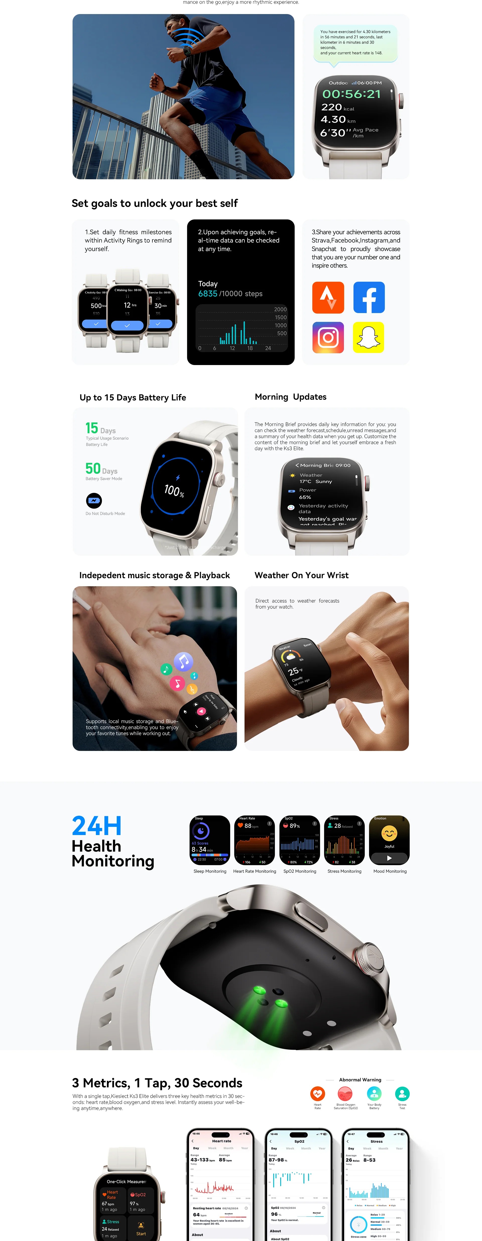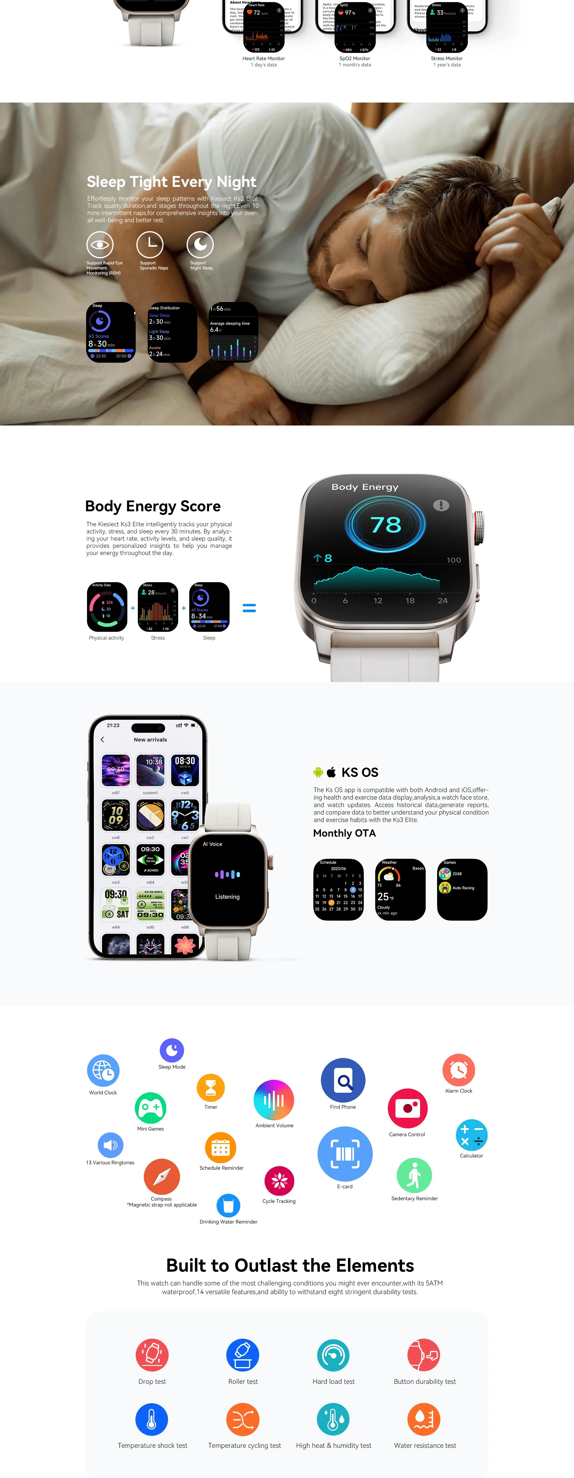 ● 5ATM Water Resistance : Résistant à l’eau jusqu’à 50 mètres pour un usage quotidien et sportif.