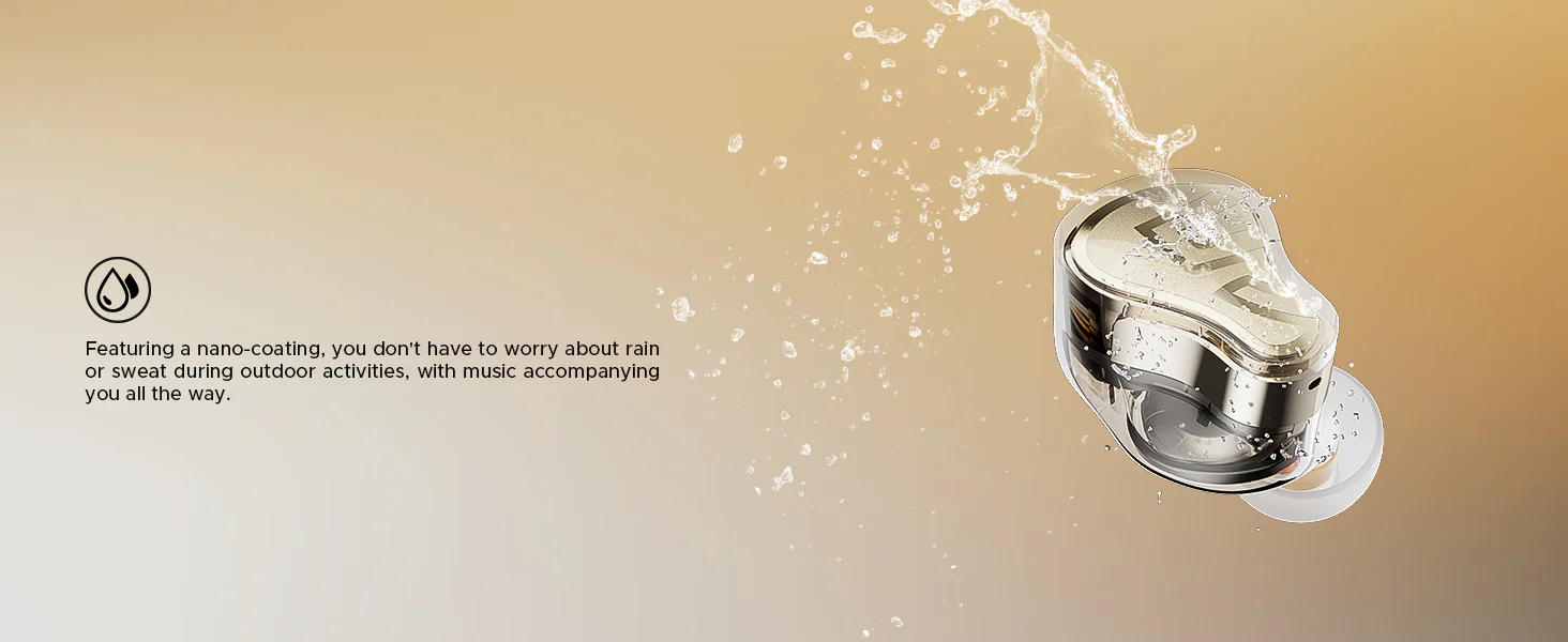 Confort et design : Boîtier semi-transparent élégant, léger et résistant à l’eau (IPX5).